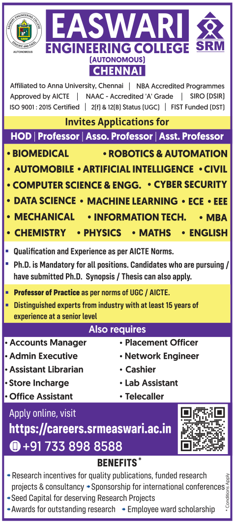 Faculty Job Openings 2023 jobs notification announced by various Colleges and Schools in Tamilnadu in today’s (25/01/2023) newspapers.