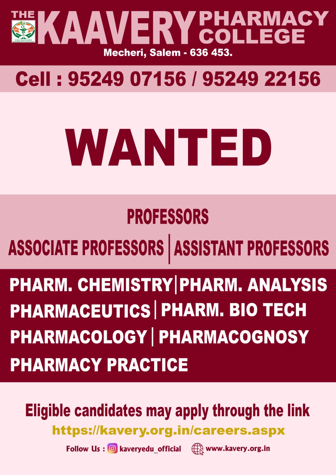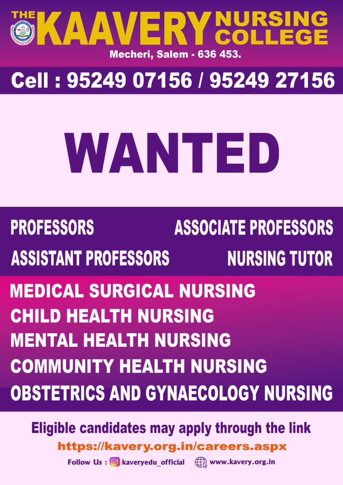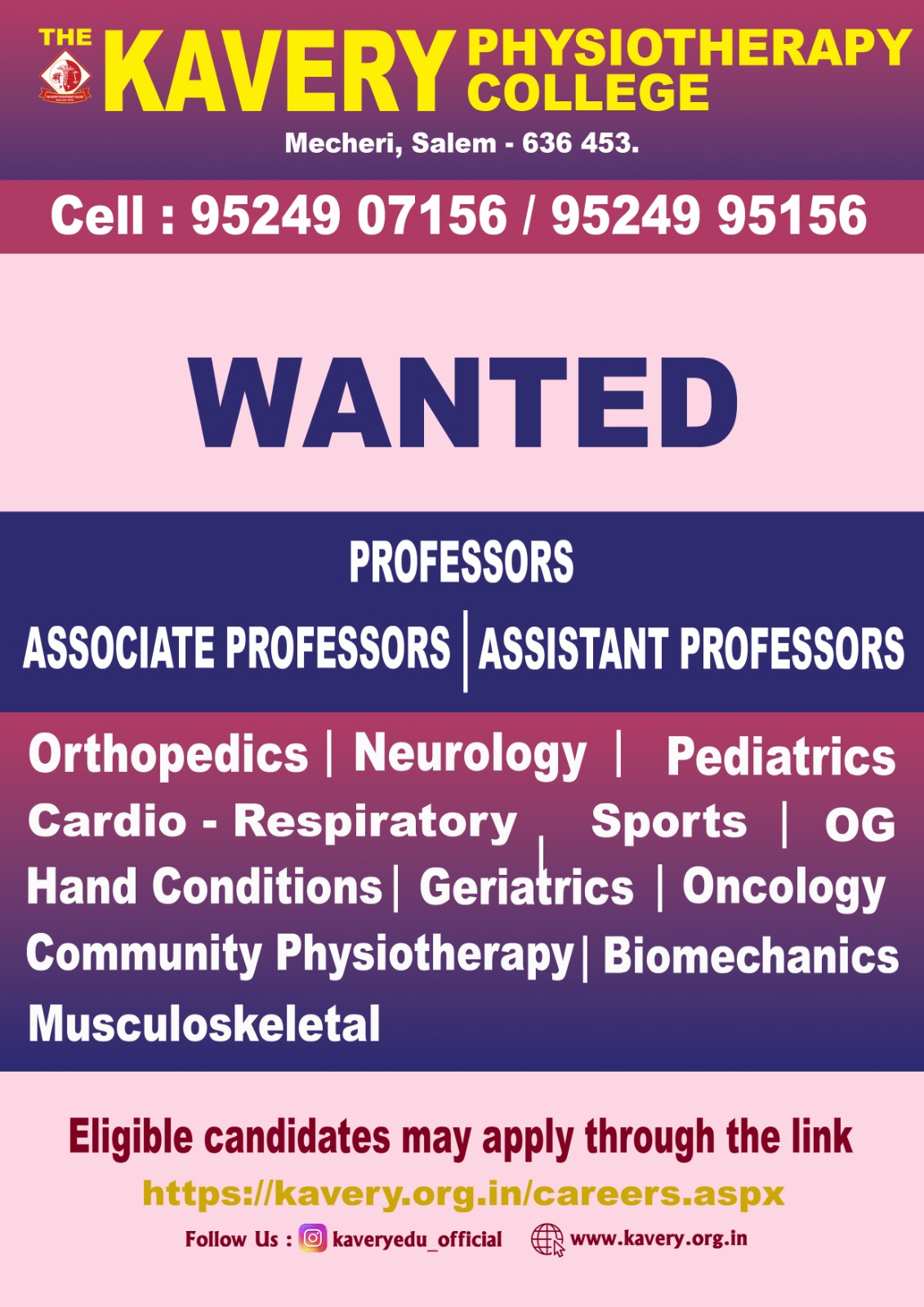 Kavery Group of Institutions offers a dynamic and growth-oriented academic environment for educators across various disciplines. Faculty members benefit from exposure to multidisciplinary teaching, modern infrastructure, and opportunities for professional development. The group encourages innovation, research, and academic collaboration, making it an ideal workplace for candidates seeking long-term career growth in education.