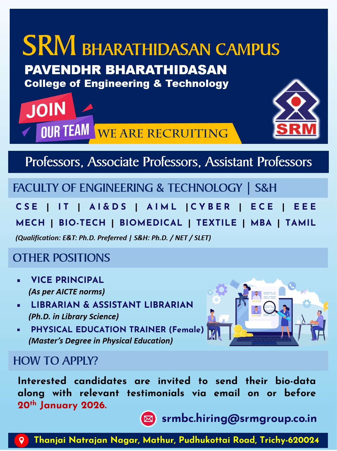 Hiring Organization: Pavendar Bharathidasan College of Engineering & Technology (SRM Group of Institutions)
