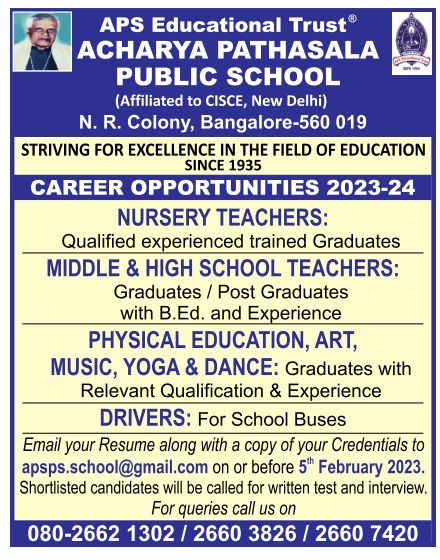 Faculty recruitment 2023 jobs notification announced by various Colleges and Schools in Karnataka- 25/01/2023