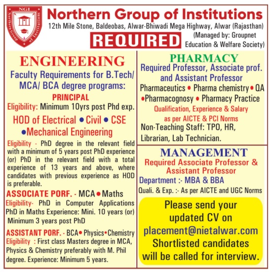 Faculty recruitment 2023 jobs notification announced by various Colleges and Schools in Rajasthan in today’s (01/03/2023) newspapers.