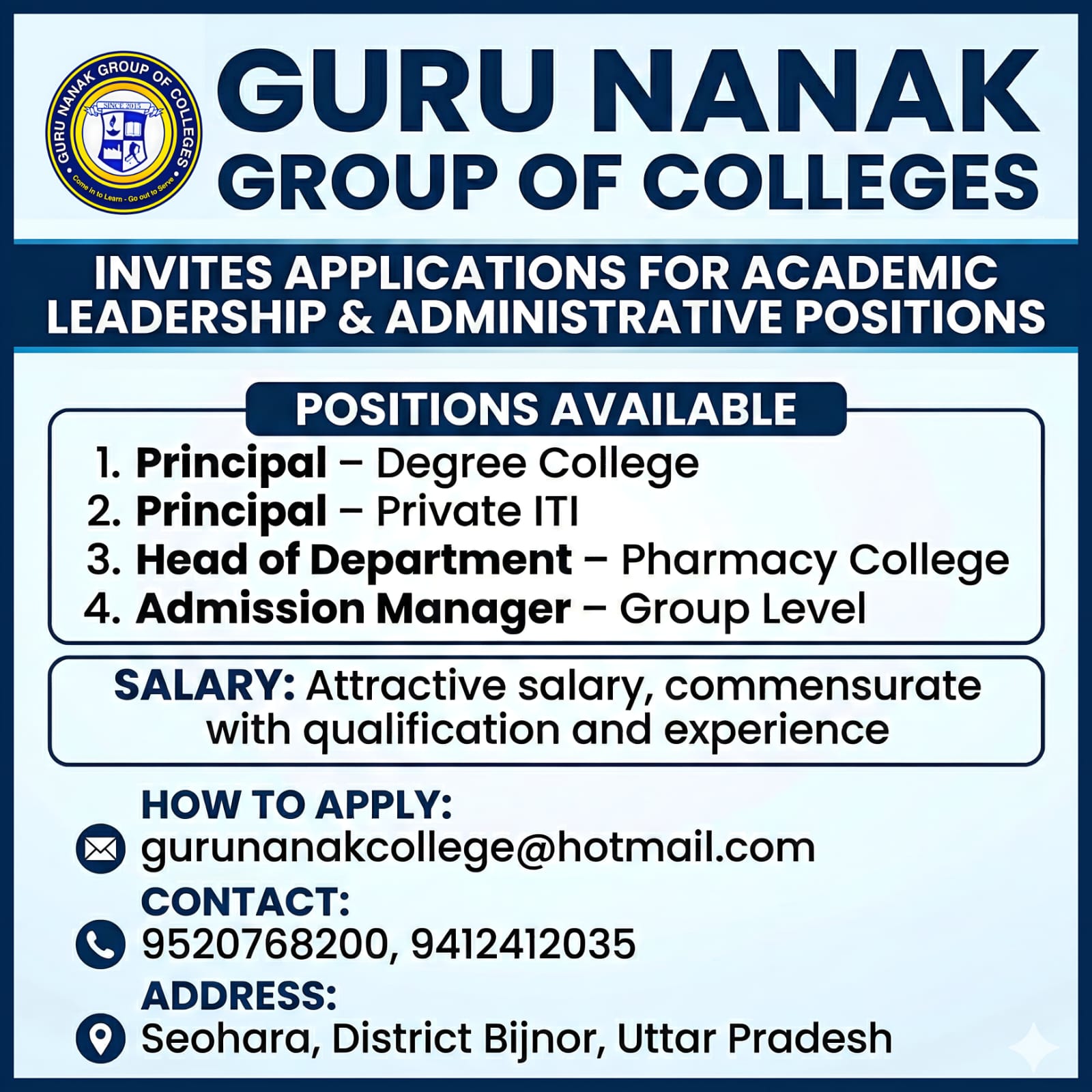 College Name: Guru Nanak Group of Colleges, Seohara, Bijnor, Uttar Pradesh