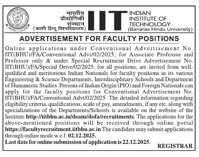 Ref: Advertisement No. IIT(BHU)/FA/Conventional Advt./02/2025