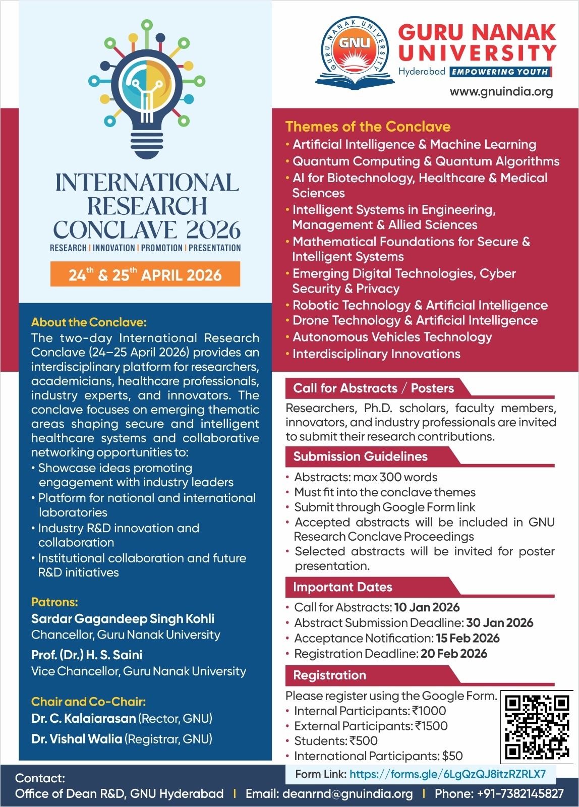 International Research Conclave 2026 at Guru Nanak University Hyderabad | Research Conference on AI, Quantum Computing, Cyber Security, Robotics, Healthcare & Emerging Technologies | Call for Abstracts.