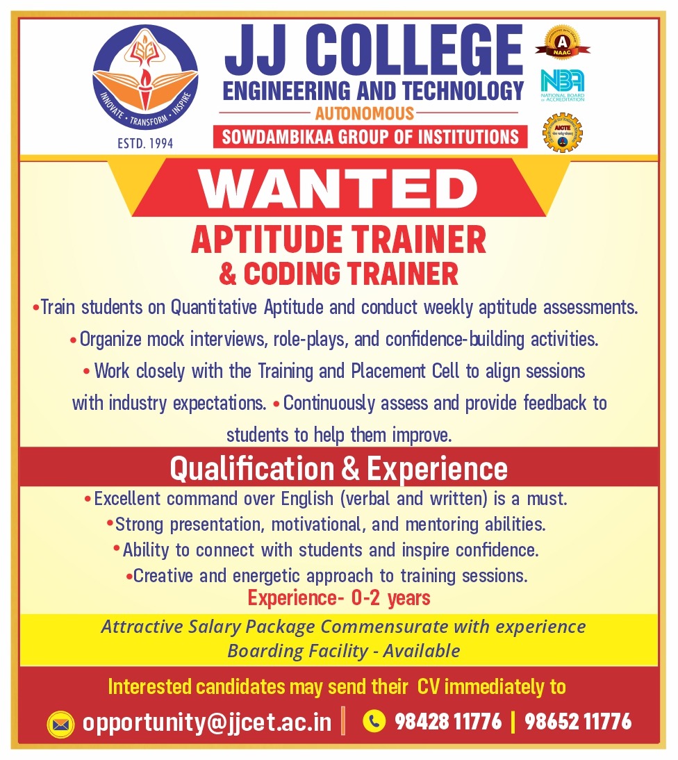Job Title: APTITUDE TRAINER / CODING TRAINER