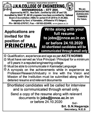 J.N.N College of Engineering, Shivamogga Wanted Principal 09 JNN College of Engineering Principal job