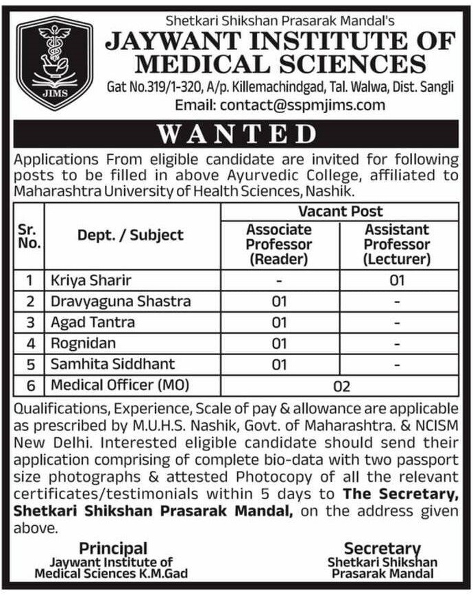 Hiring Organization: Jaywant Institute of Medical Sciences, Sangli