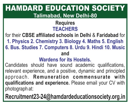 Faculty recruitment 2023 jobs notification announced by various colleges and Schools in New Delhi in today’s (04/01/2023) newspapers.