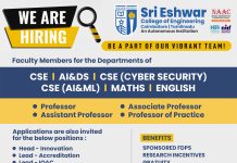 | Assistant Professor, Associate Professor, Professor | CSE, IT & AI&DS | As per AICTE and Anna University norms | |||||||||||||||