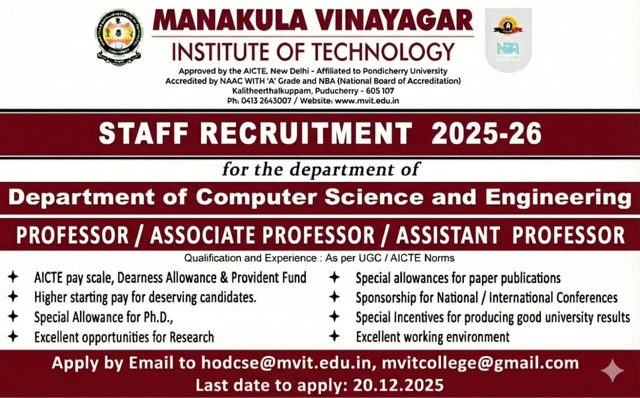 College Name: Manakula Vinayagar Institute of Technology, Puducherry
