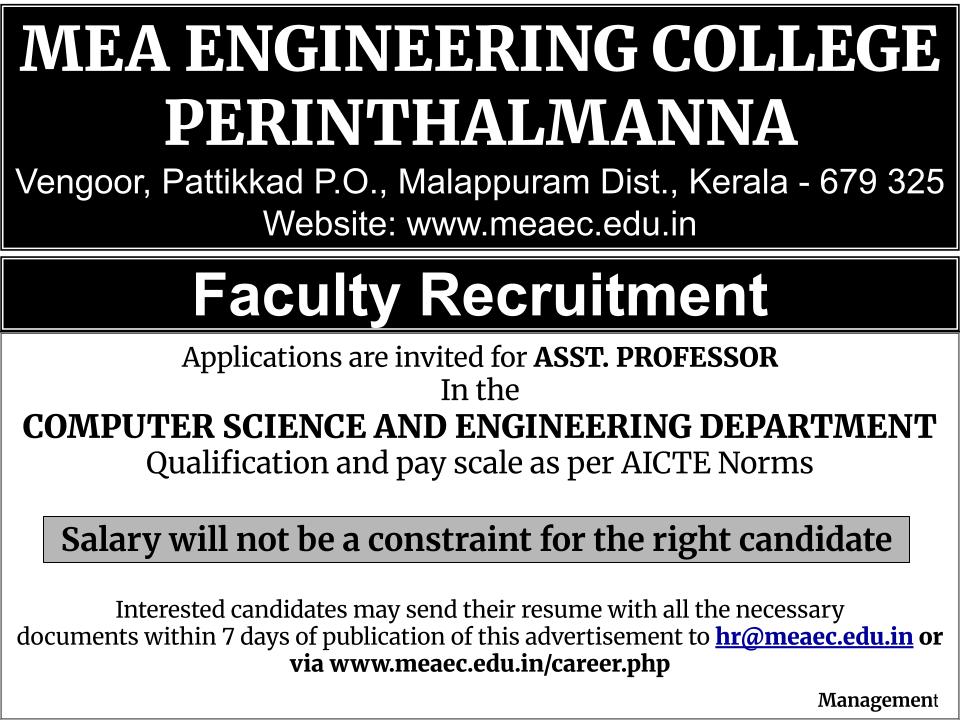 Hiring Organization: MEA Engineering College, Malappuram, Kerala