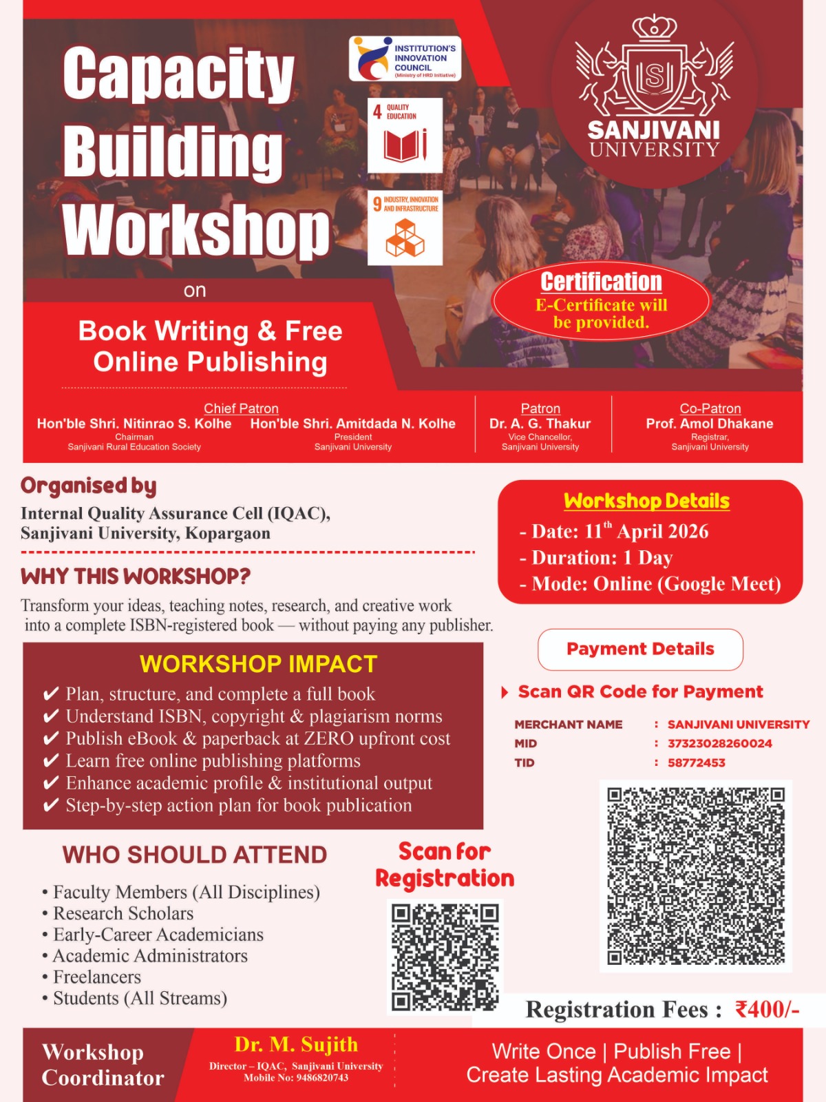 Dr.Sujith M, Director IQAC, 9486820743