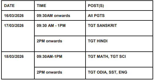 How to Apply: Applications from eligible candidates are invited for Empanelment of Teachers on purely Contractual basis in Odisha Adarsha Vidyalayas and Odisha Mining Adarsha Vidyalayas of Sundargarh District for session 2026-27. The scrutiny for All PGTs & TGTs will be held at Odisha Mining Adarsha Vidyalaya, Rourkela, in front of Gate No-1, Birsa Munda Hockey Stadium, Chhend, Rourkela, PIN769015 as per the timing given below. Candidates are to apply with xerox copies of all certificates and marksheets and one PP size photo to the Nodal Principal, Sundargarh at the above address latest by 12/03/2026 by Speed post only. The number of posts and dates of certificate verification are given below.