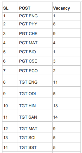 • TGTs: Graduation with two school subjects relevant to the post & B.Ed with OTET- II / CTET –II/ OSTET pass