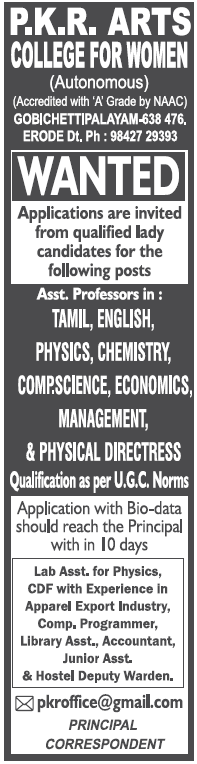 Hiring Organization: P.K.R. Arts College For Women, Erode