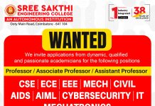 Next articleShreenivasa Engineering College, Dharmapuri Wanted Assistant Professors