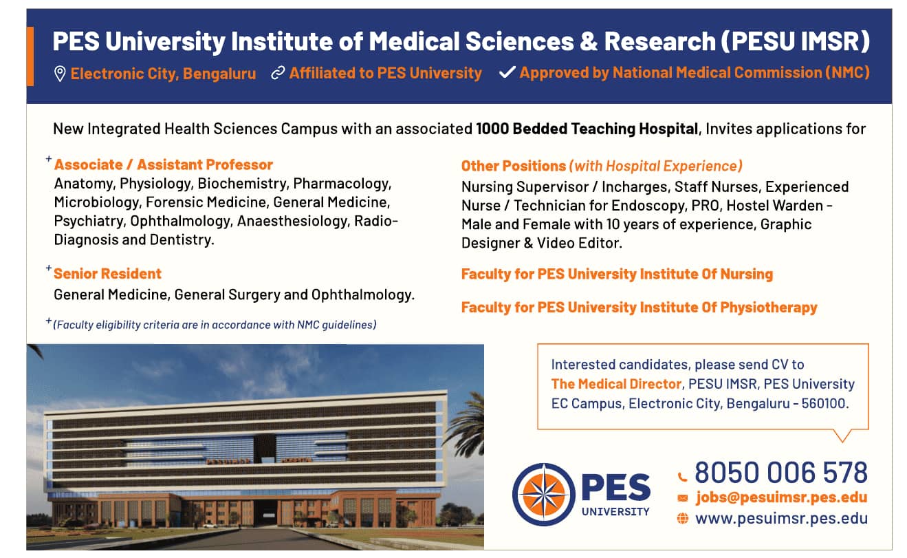 Faculty Recruitment 2025 job notification announced by PES University, Bengaluru for recruitment of Faculty Positions. Eligible candidates may send their resume through Postal