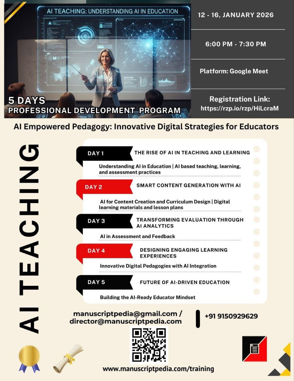 This Event designed to empower educators with AI-driven teaching, learning, and assessment strategies. Participants will explore the transformative role of Artificial Intelligence in modern education — from content creation to student engagement, assessment, and curriculum innovation.