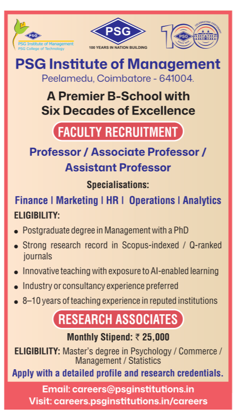 Hiring Organization: PSG Institute of Management, Coimbatore