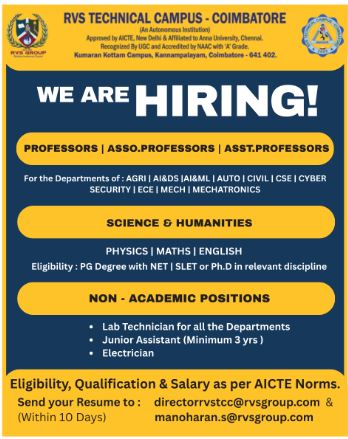 Hiring Organization: RVS Technical Campus Coimbatore (Autonomous)