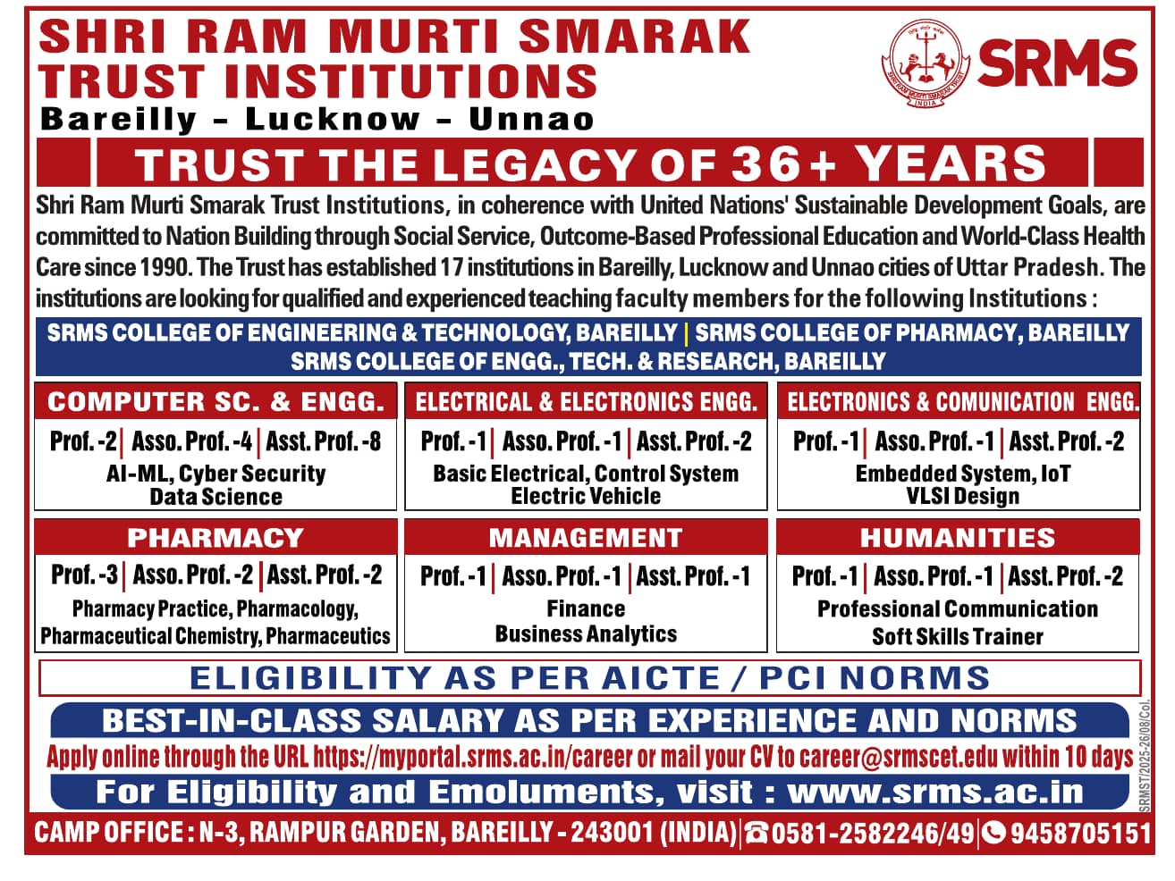 Hiring Organization: SHRI RAM MURTI SMARAK TRUST INSTITUTIONS