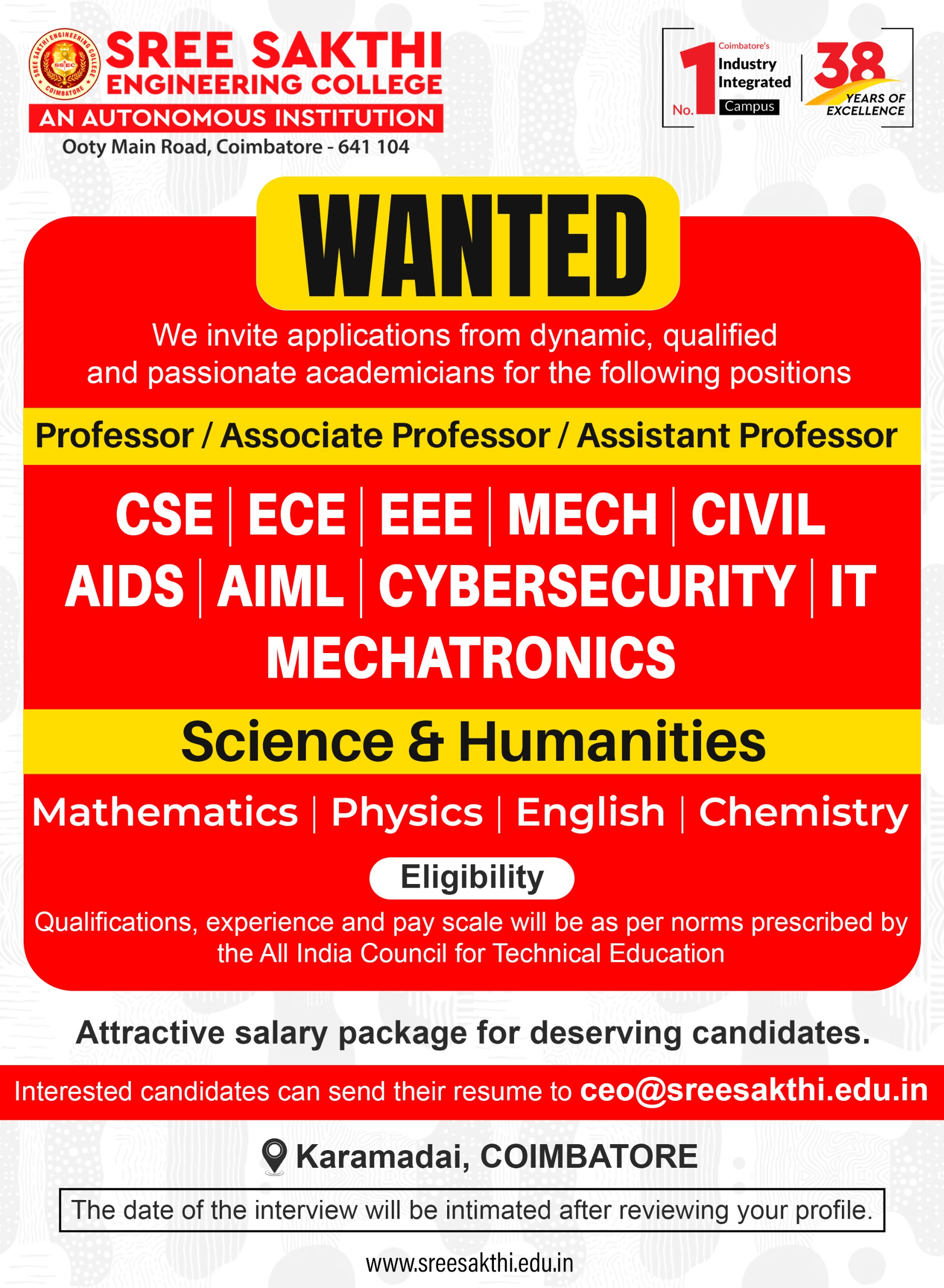 Sree Sakthi Engineering College (Autonomous), Coimbatore – Coimbatore’s No.1 Industry Integrated Campus with 38 Years of Excellence.