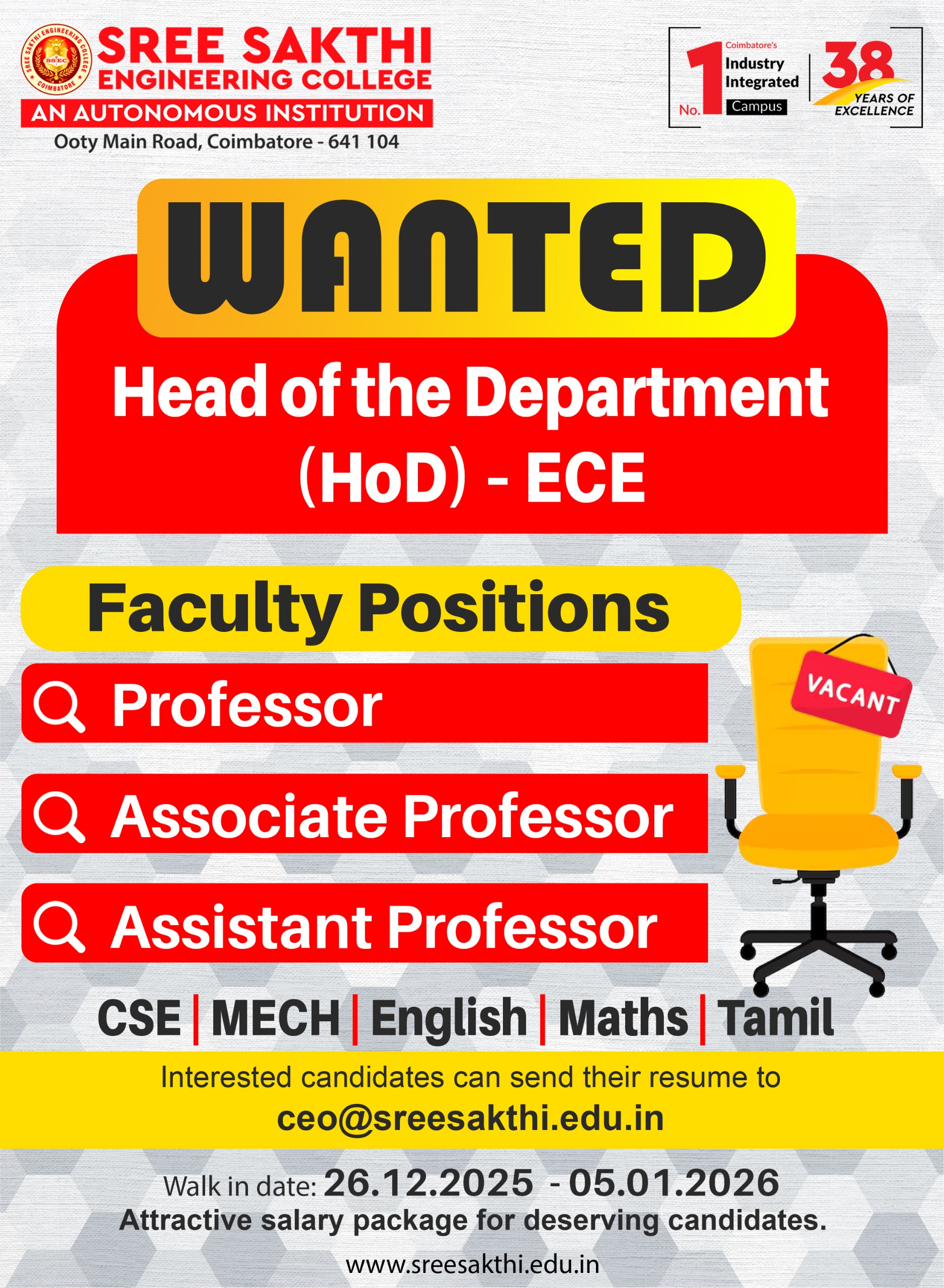Sree Sakthi Engineering College, Coimbatore | Faculty Recruitment