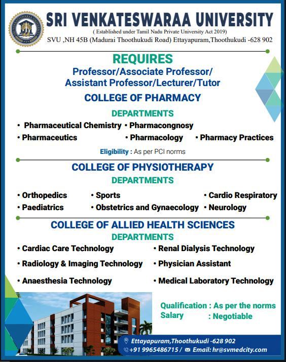 Name of the University: SRI VENKATESWARAA UNIVERSITY, ETTAYAPURAM CAMPUS