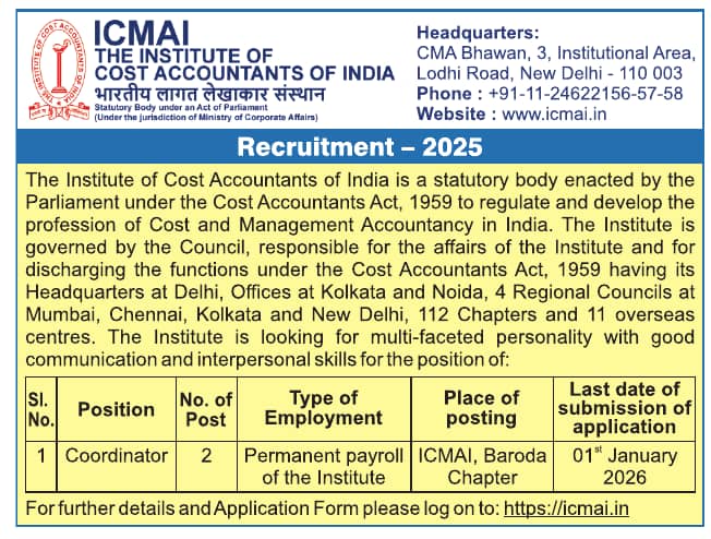 Job Location: ICMAI Baroda Chapter