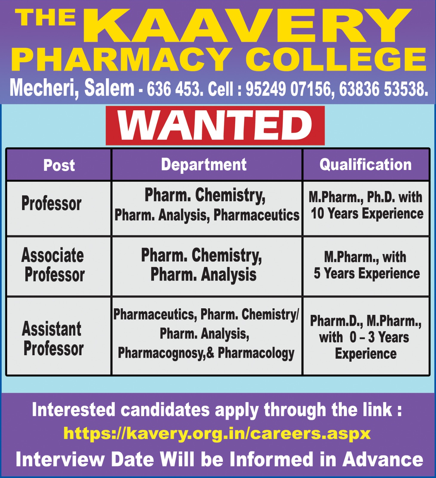The information provided on this website is for general informational purposes only. Facultyplus.com is a platform that connects job seekers with potential employers. We do not guarantee the accuracy, completeness, validity, or timeliness of any job listings, employer information, or other content posted on our site. Visitors of this facultyplus.com are requested to very the infomation directly in the instution website/official link before apply to this job