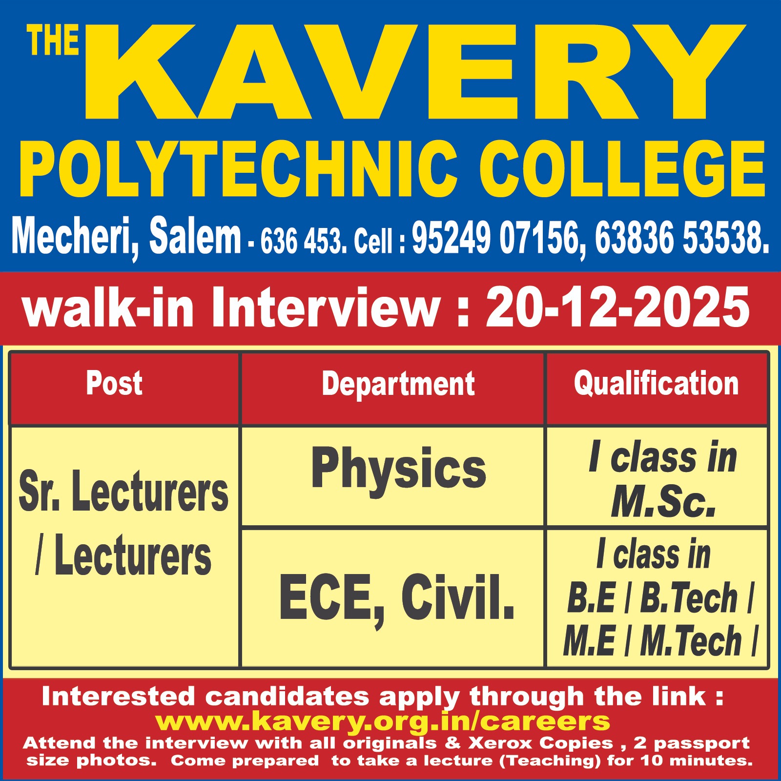 To Apply Online: http://www.kavery.org.in/careers.aspx