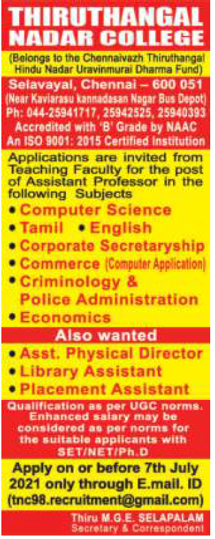 Thirutangal Nadar College Job