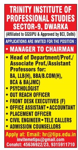 Hiring Organization: Trinity Institute of professional Studies, Dwarka