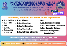 Unnamalai College of Arts and Science, Kovilpatti, Tamilnadu announced faculty jobs opening for the post of Assistant Professors. Eligible candidates may apply through email or Postal.
