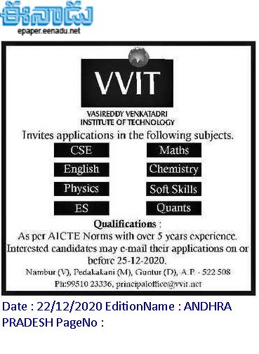 VVIT Faculty Recruitment